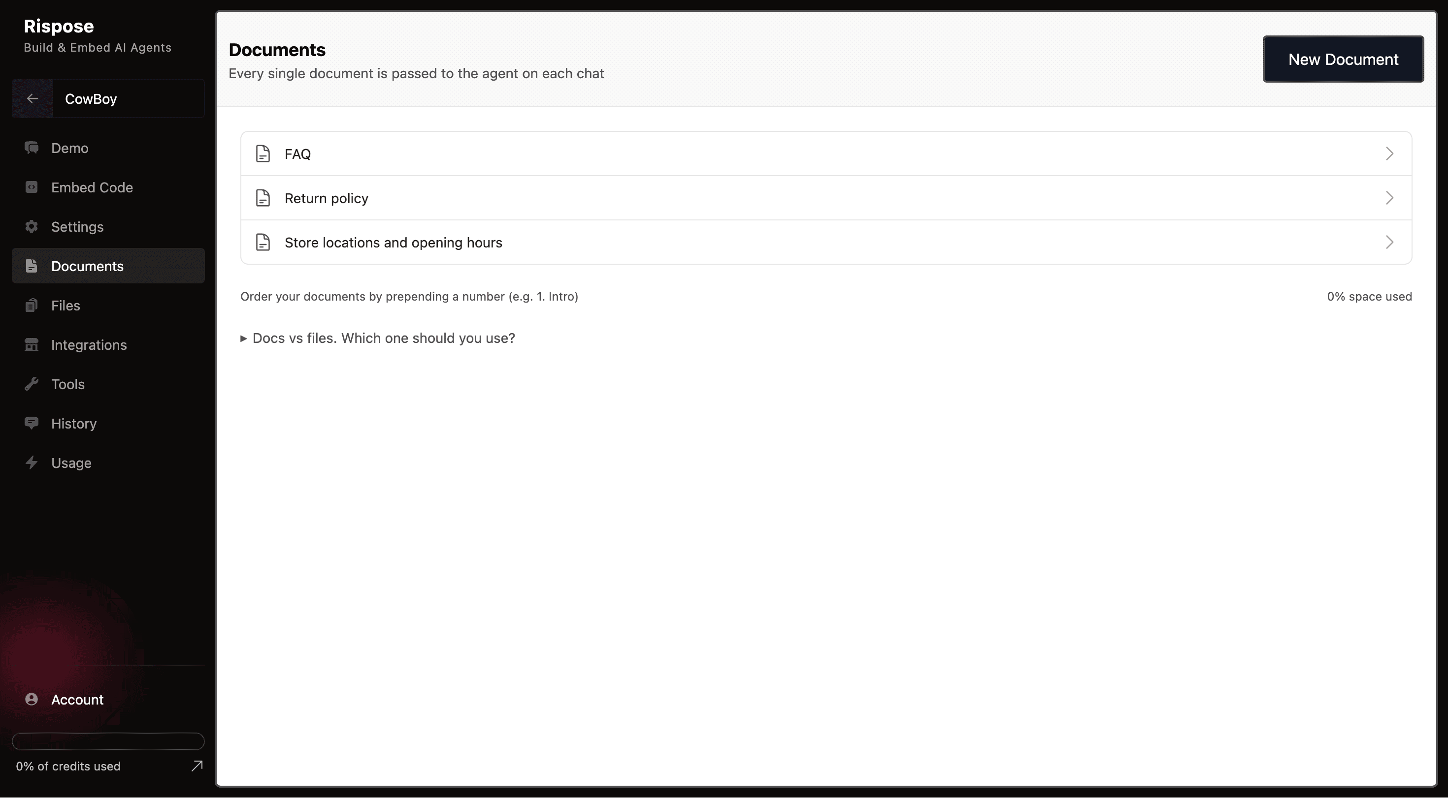 Train your agent by uploading up to 1.000 files.