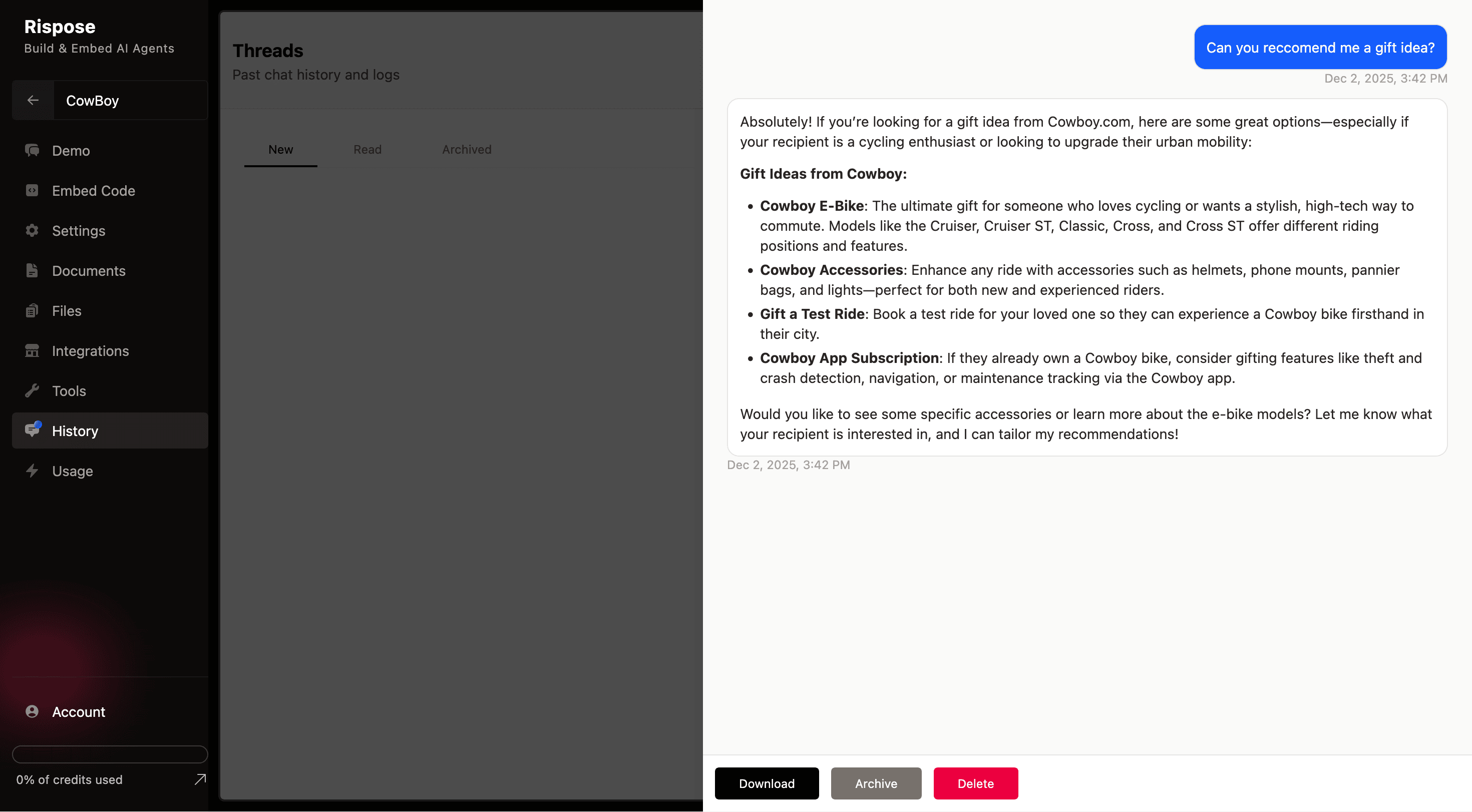 "Rispose made it incredibly easy to embed LLMs into our existing web applications and websites. It's fast, straightforward, and budget-friendly. Performance has been excellent, and the support team has been consistently responsive and helpful with all our requests."
